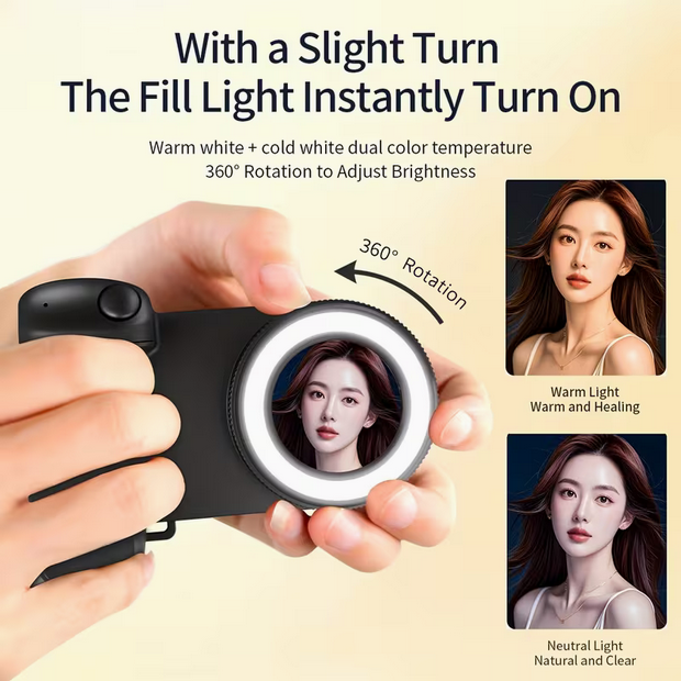 Erleben Sie Fotografie auf einem neuen Level. Dieser ergonomische Kamera-Griff bietet Ihnen das haptische Gefühl einer echten DSLR-Kamera für Ihr Smartphone. Dank der starken Magnetkraft (MagSafe-kompatibel) lässt sich Ihr Telefon sicher fixieren, während der integrierte Bluetooth-Auslöser ein bequemes Fotografieren mit nur einer Hand ermöglicht. Das Highlight: Ein eingebautes LED-Ringlicht mit einstellbarer Helligkeit sorgt in jeder Situation für die perfekte Ausleuchtung Ihrer Aufnahmen.