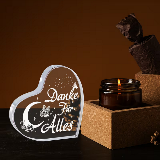 • Typ: Herzförmiges Acryl-Andenken / Schreibtisch-Ornament.